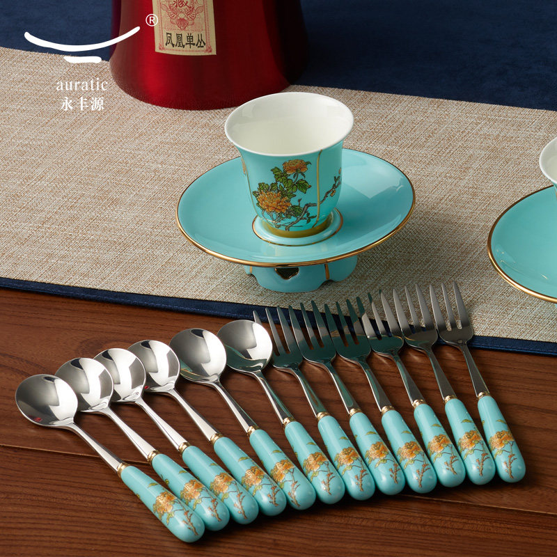 Yong Feng Yuan Mrs. Porcelain Ceramic 2 Heads Spoon Fork Home Dessert Fork Coffee Spoon Combination