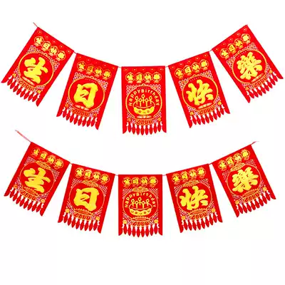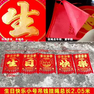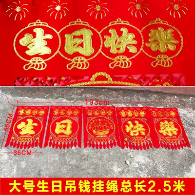 Happy birthday five consecutive string of flocking cloth hanging money for birthday hanging money door hollow hanging decoration wall decoration hanging flag