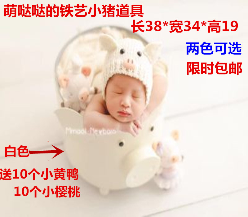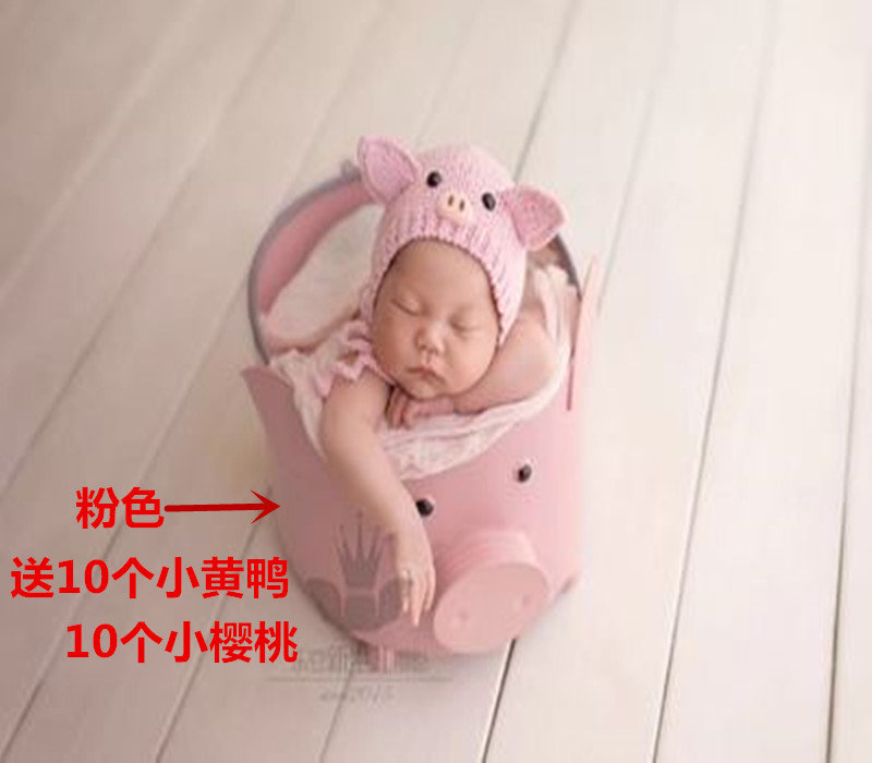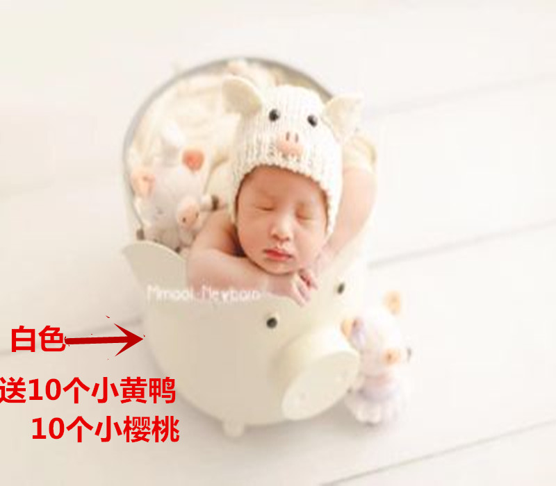 Newborn photography props piggy iron bucket photo studio baby full moon hundred days baby photo piggy basket props