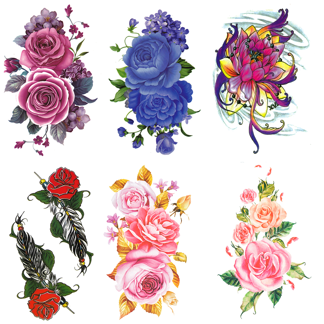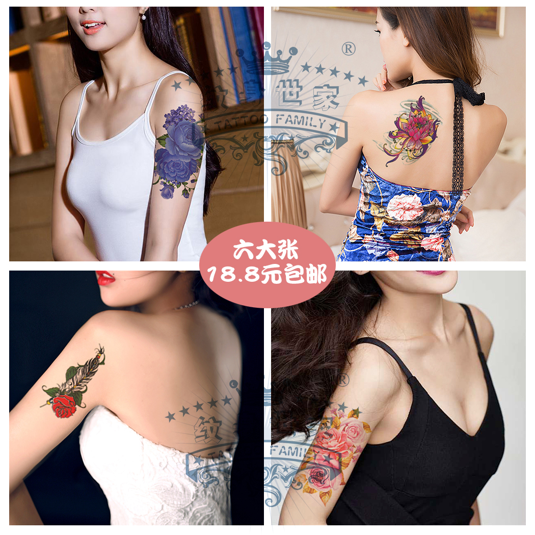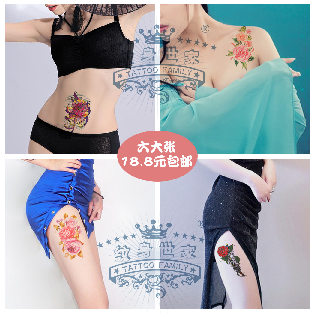 Big Picture Rose Flower Tattoo Sticker Waterproof Female Persistent Sexy Lotus Feather Caesarean Scar Sticker