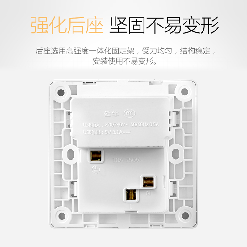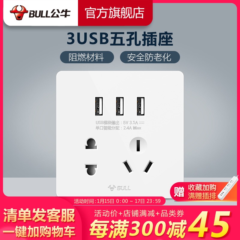 Bull socket flagship wall switch 5-pin socket recessed with 3USB five-pin fast charging panel G12 white