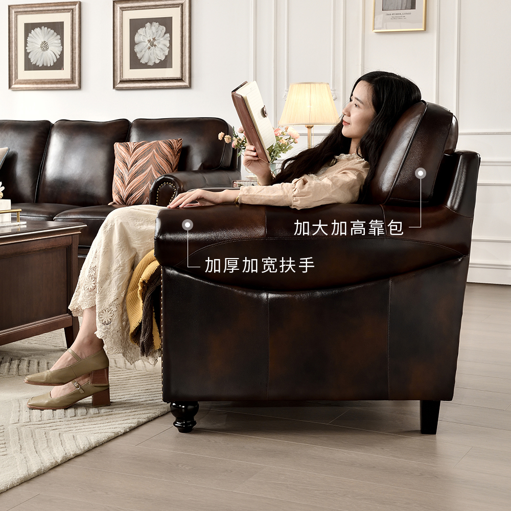 American sofa genuine leather head layer cow leather small family type trio position combined small beauty countryside retro style wind room furniture innate