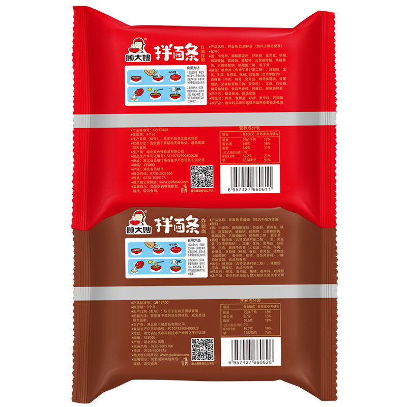 Red oil noodles 133g*3 bags of fried noodles 136g*3 bags of red oil noodles*1 Fried noodles*2 Red oil noodles*2 Fried noodles*1 (A total of 10 bags)Acid