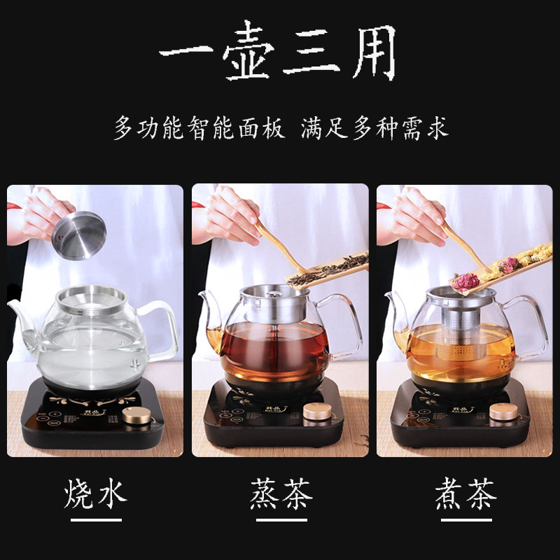 Fully automatic boiling teapot smart tea cooker small black teapot home steam spray glass office health pot