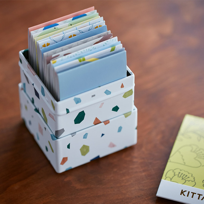 Japan Kingjim Jin Palace KITTA hand account sticker storage tank Tinplate mini post-it note box storage box Cute sticker storage tank sundries storage box storage tank hand account sticker finishing box