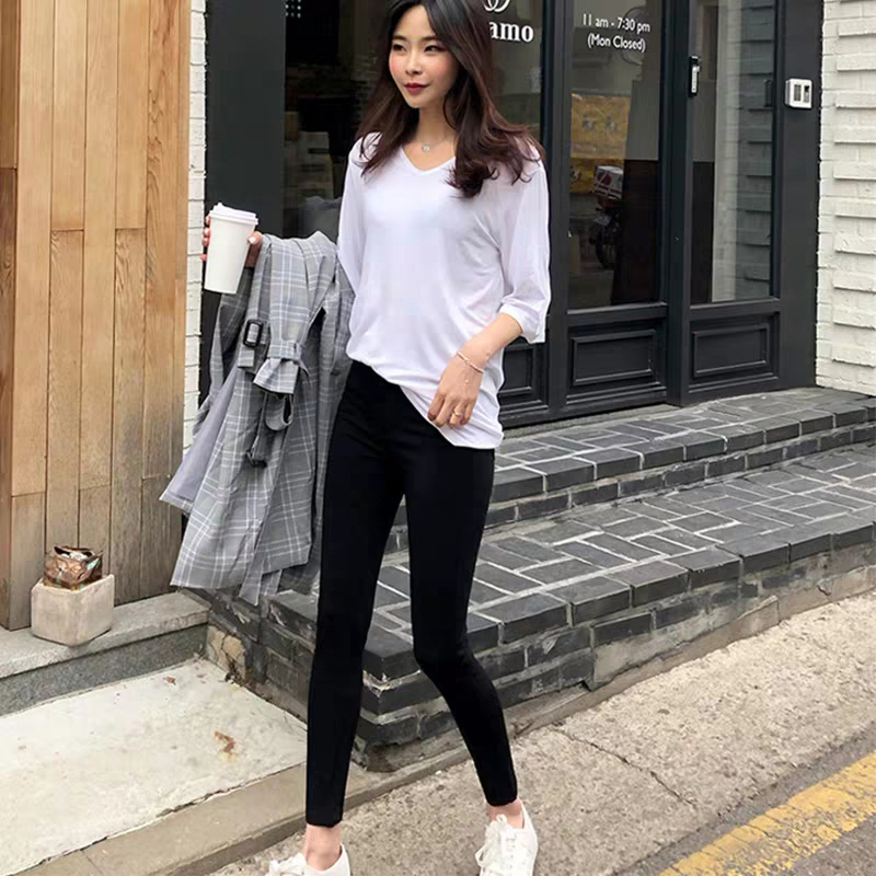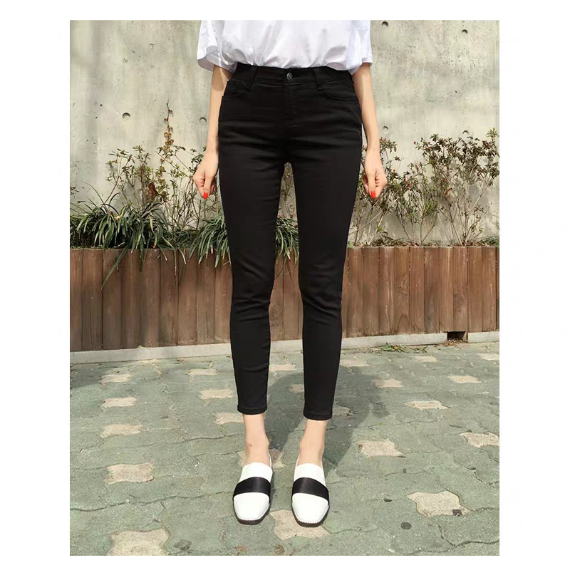 Women's pencil pants women's 2021 new pure black high-waisted jeans women's eight-point slim thin feet long pants