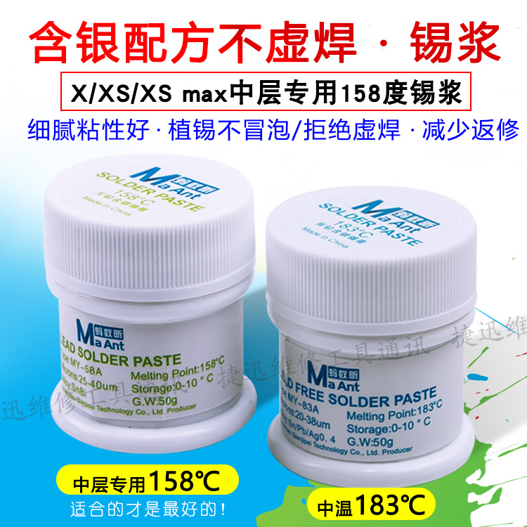 Ant Xin tin paste mobile phone repair CPU motherboard solder paste has lead and silver high, medium and low temperature environmental protection lead-free tin planting