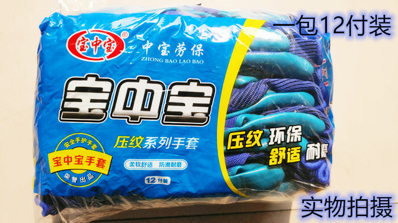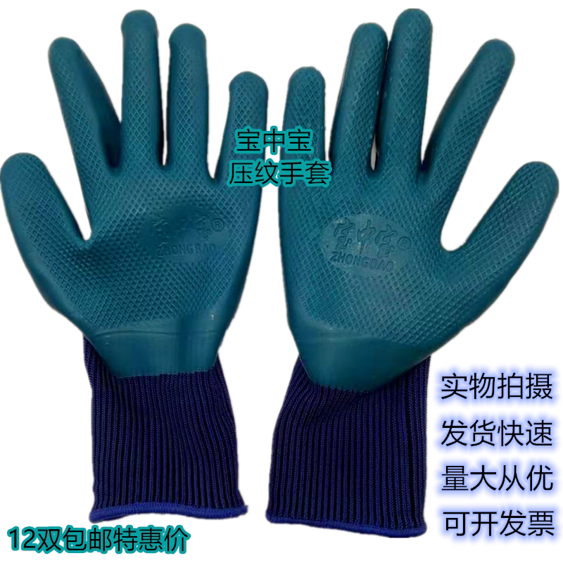 Baozhongbao embossed gloves labor insurance dipped thickened work non-slip oil-proof rubber dry work site men and women