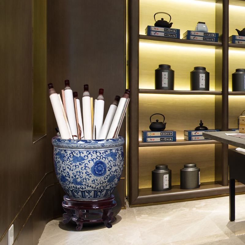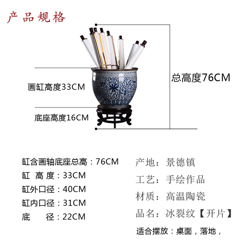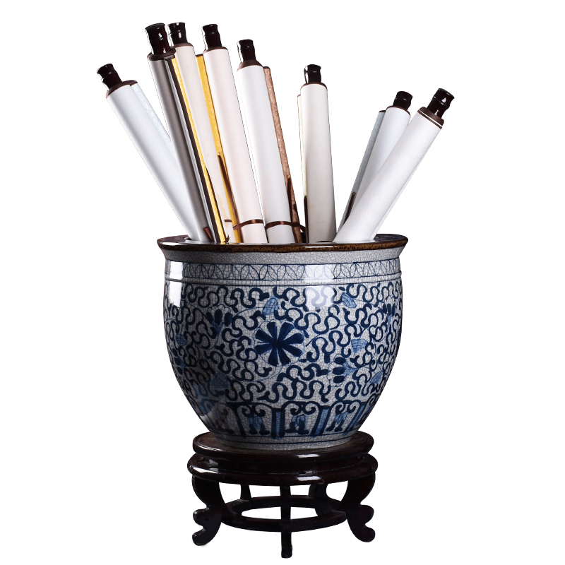 Jingdezhen Ceramic Vase Green Flower Crack Glaze painting and calligraphy containing cylinder scroll cylinder Living room Book room Calligraphy Painting Barrel