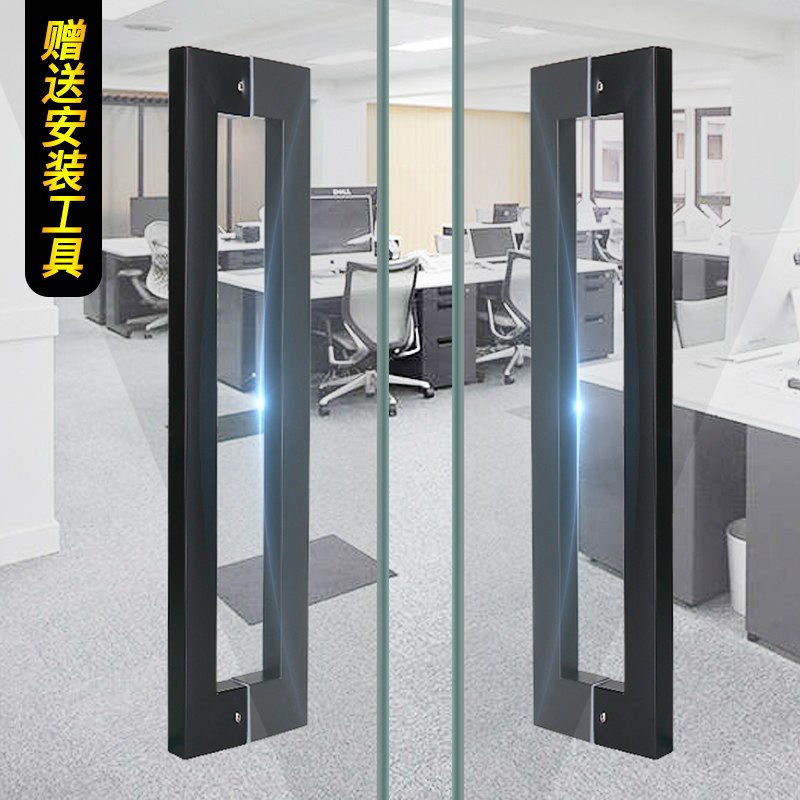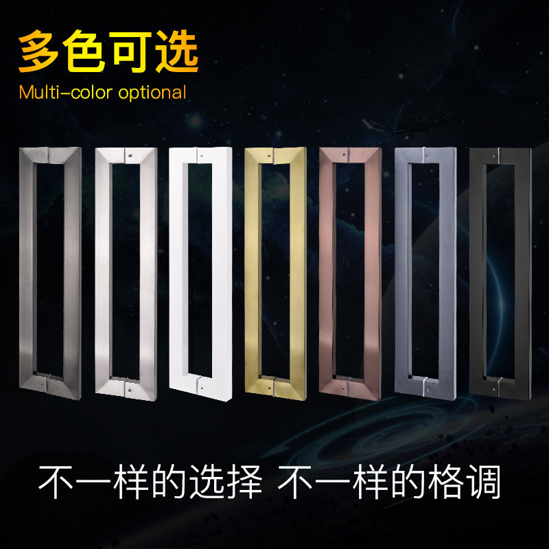 Glass door thickened wire drawing stainless steel handle large door handle matte black titanium gold square tube wooden door pair with armrests-Taobao