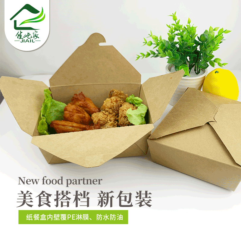 Jiayi Family Kraft Paper Fast Food Box Disposable Takeaway Packing Box Salad Fried Chicken Roast Meat Mixed Packing Box