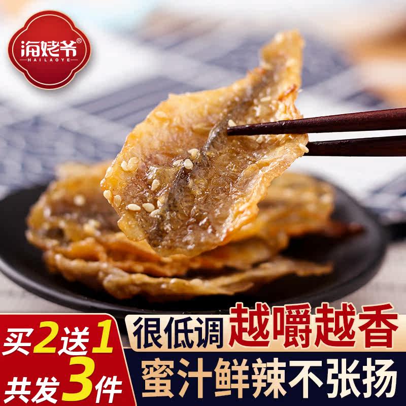 Grandpa Hai Spicy yellow croaker Honey roasted small yellow fish Dried leisure ready-to-eat snacks Dried seafood snacks Specialty