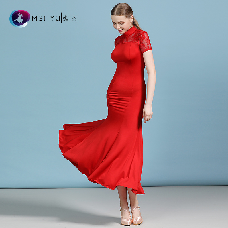 Clearance adult short-sleeved modern dance dress MY813 national standard dance costume ballroom dance practice big swing skirt