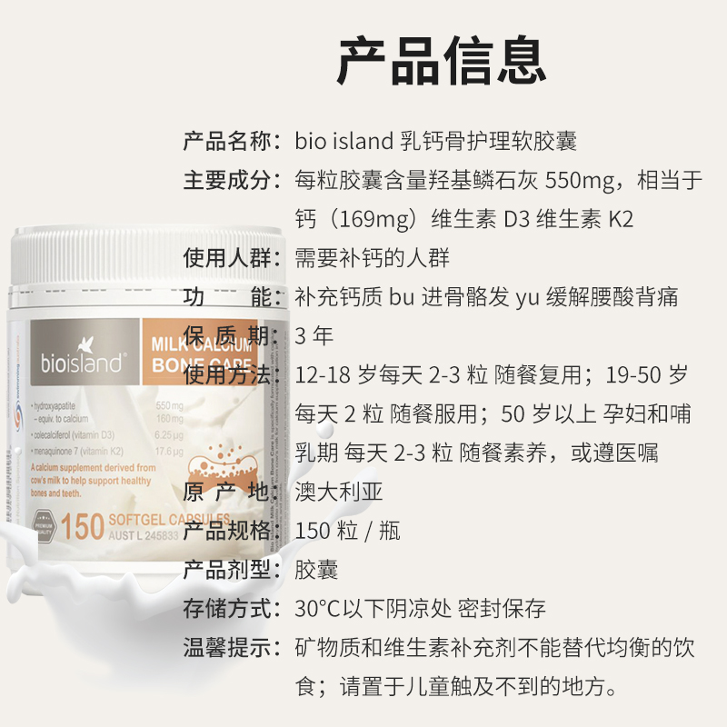 Australian Bio island Adult milk calcium 150 Grain Natural Liquid Calcium Adolescent Pregnant pregnant Calcium Supplements Calcium