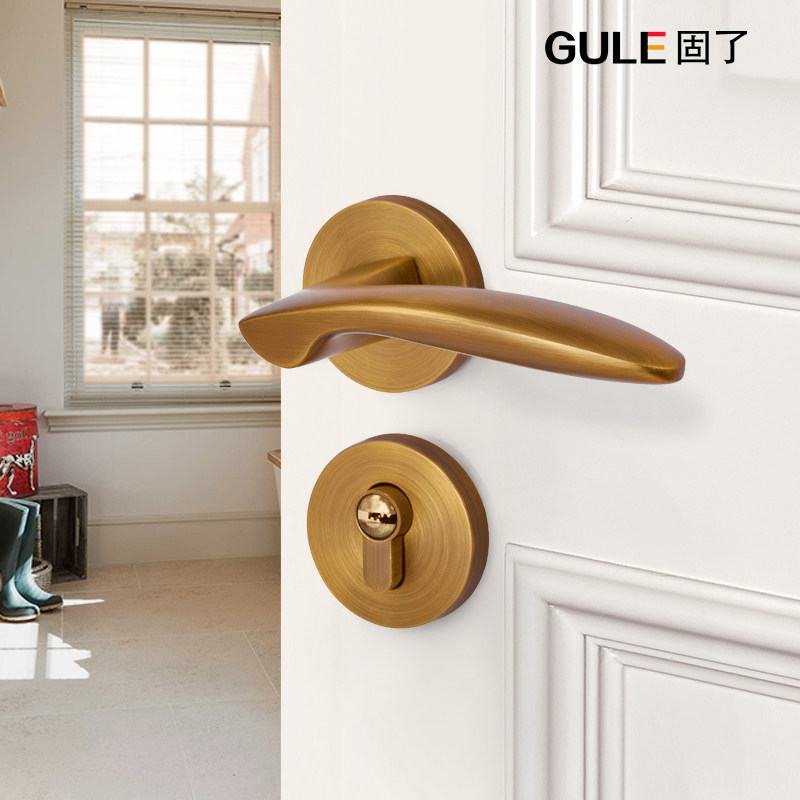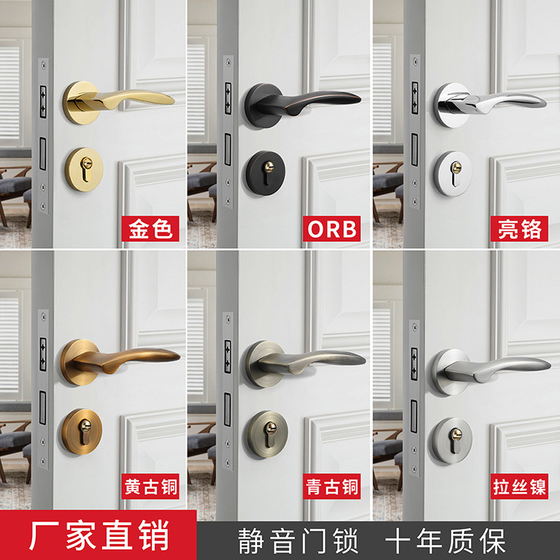 Indoor golden PVD door lock modern light luxury bedroom door lock magnetic suction mute household wooden door lock door handle