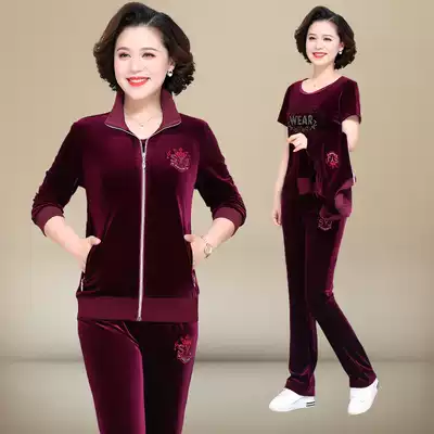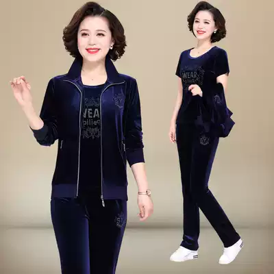 Middle-aged leisure suit 2021 spring and autumn 40-year-old 50 mother dress middle-aged Foreign style golden velvet sports suit women