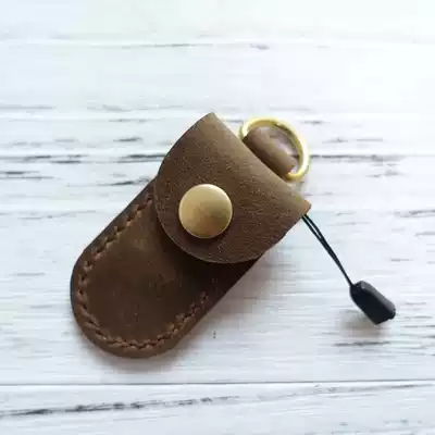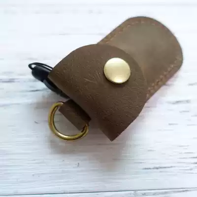 Leather U disk protective cover mini ushield storage case portable leather key anti-lost leather case round tail