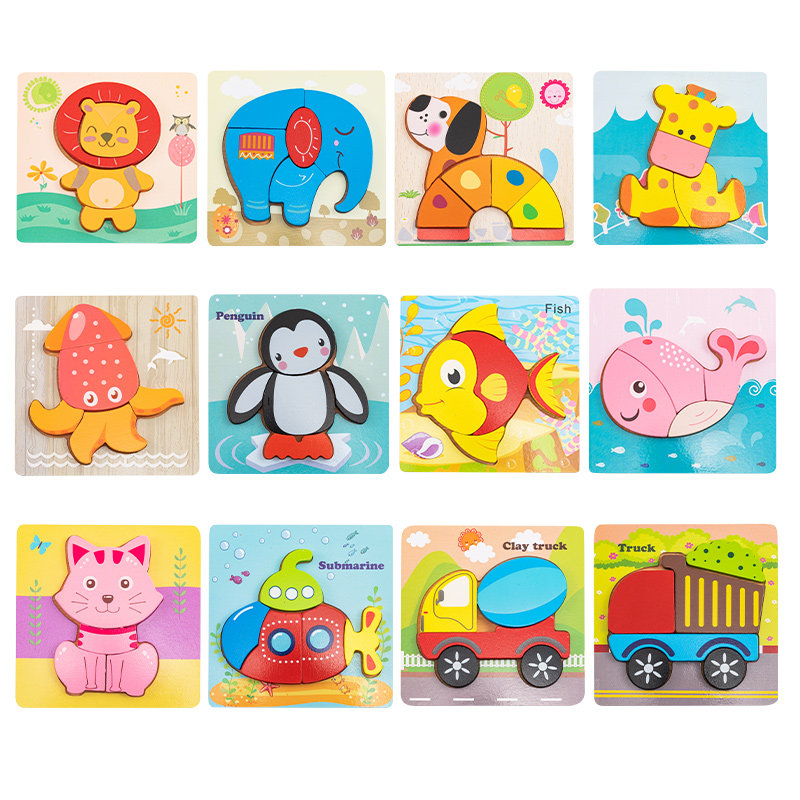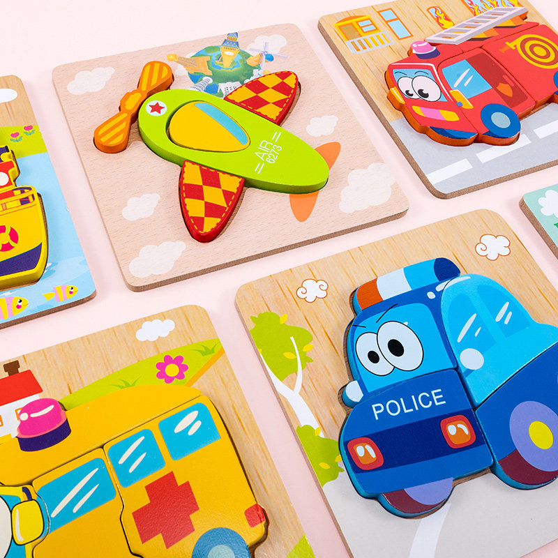 Baby boy 1-2-3D ½ wood solid puzzle hand grip plate baby early to teach puzzle toy male girl