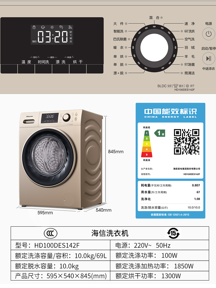 Haixin 10 kg kg roller washing machine Full automatic frequency conversion dryer All home HD100DES142F