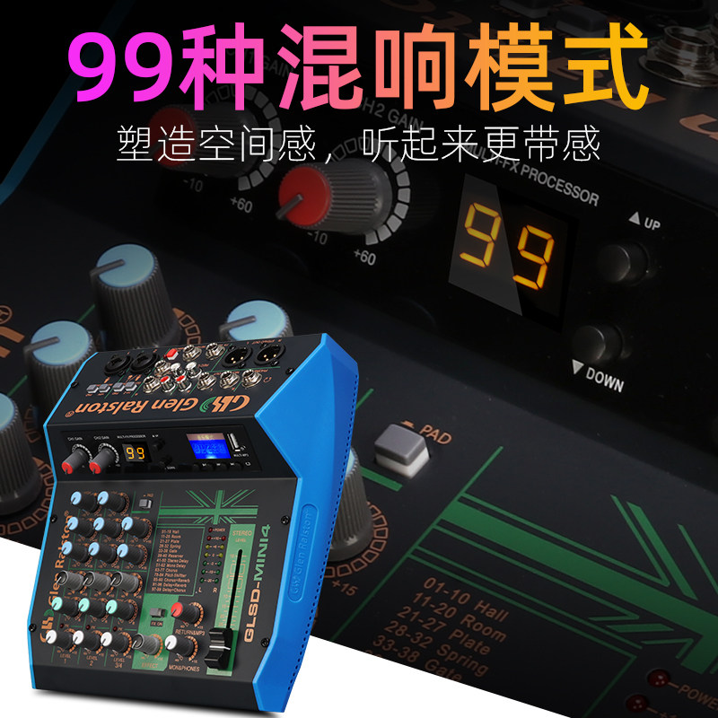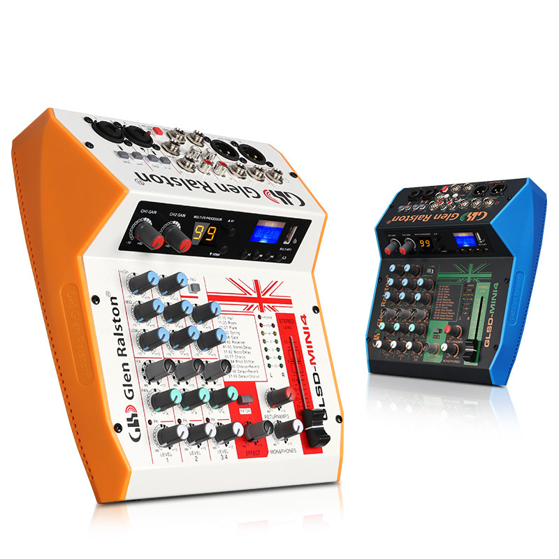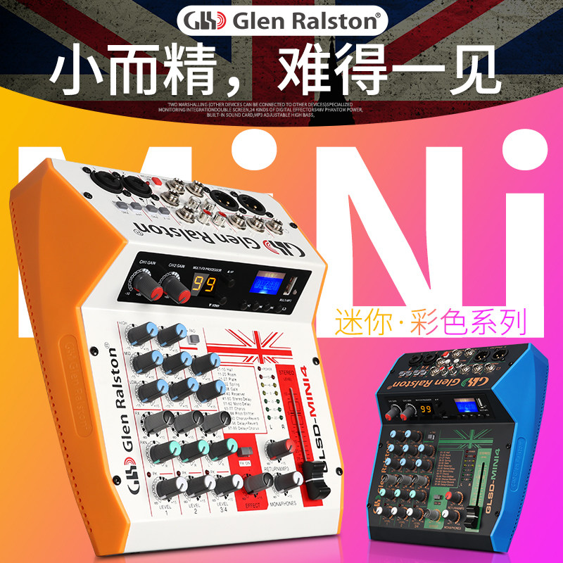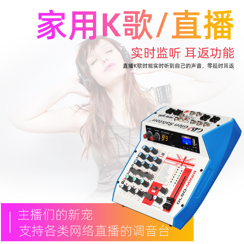 Glen ralston Glenston Professional Small Mini Mixer 4CH Live Equipment Full set of built-in sound card Bluetooth monitor reverberation equalization effect Home K song ktv anchor TikTok