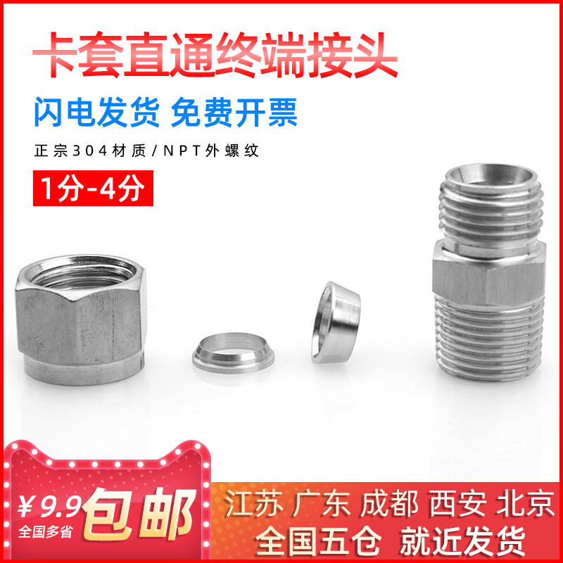 304 stainless steel cutting sleeve joint cutting sleeve type straight through terminal joint single double cutting sleeve AmericanNPT external thread