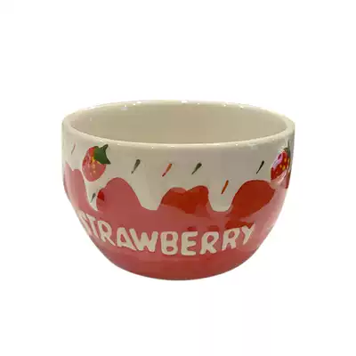 * Piece by piece * Cute ins strawberry bowl girl heart Korean retro ceramic bowl embossed fruit salad bowl