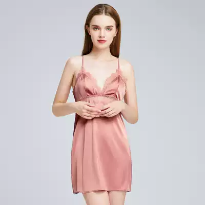 Pajamas Sexy women hot adult suspender night dress Ice silk halter deep V lace slit fun pajamas home clothes