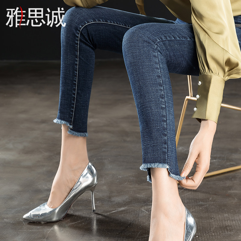 Ielts cheng raw edge jeans women's high waist women's nine-point small foot pencil 2021 pants new women's pants