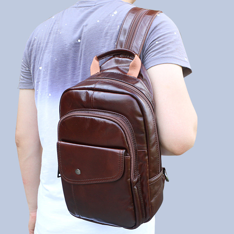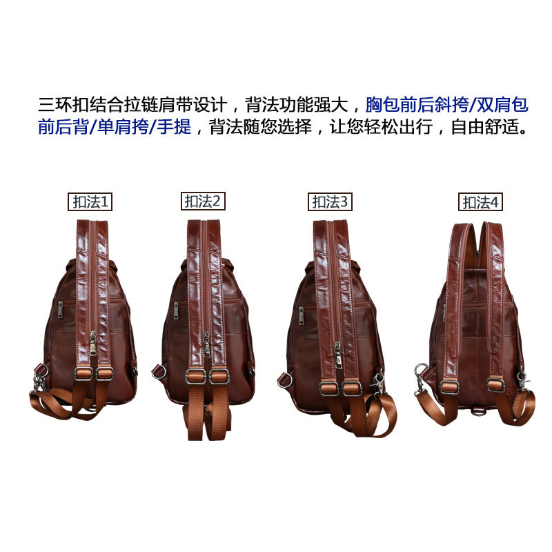 Shoulder bag men's large-capacity multi-function backpack chest bag men's genuine leather diagonal all-match cowhide leather soft leather messenger bag