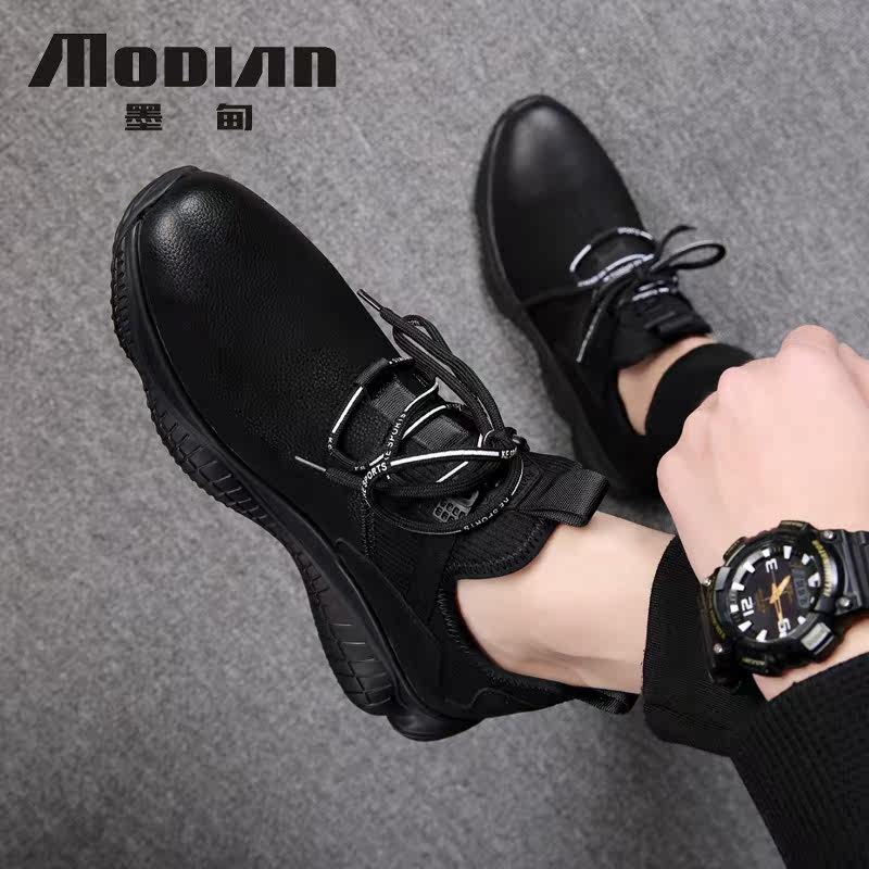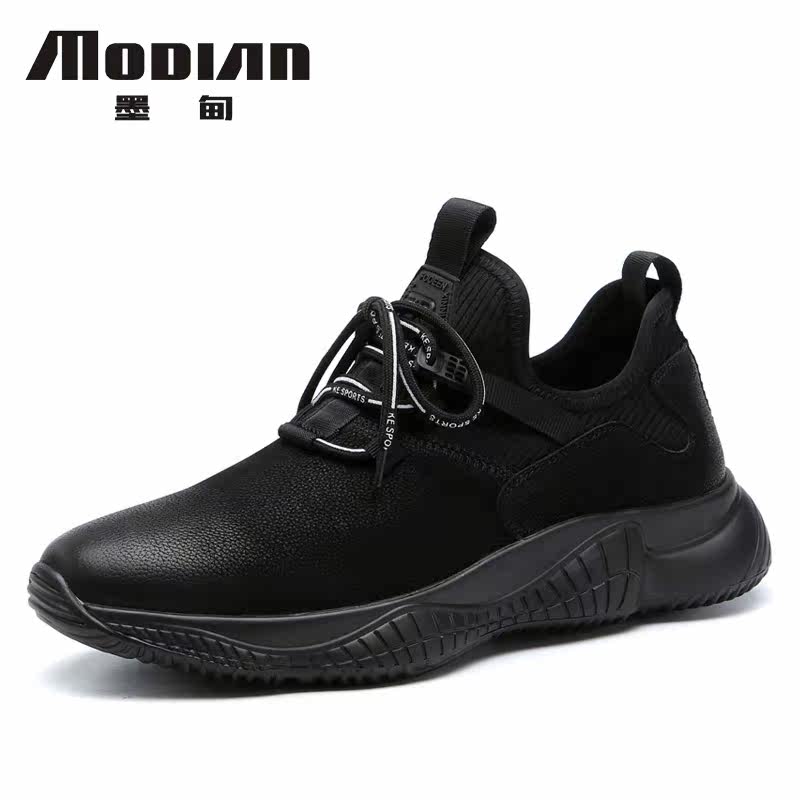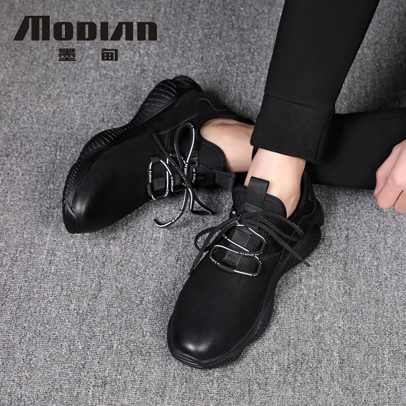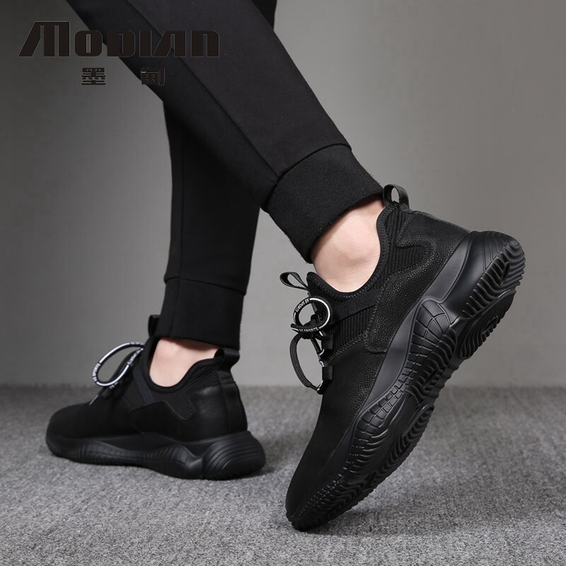 Men's Shoes Black Thick Sole Autumn Dad Shoes Men's Leather Men's Sports Casual Leather Shoes British Outdoor Running Shoes