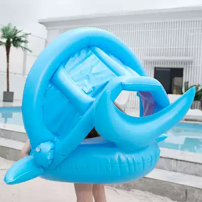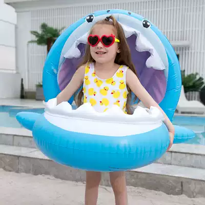 Blue Shark Children Swimming Circle Infant Playing Water Awning Sunscreen Inflatable Thickened Seat 1-3-4 Years Old