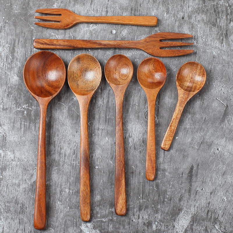 Grapefruit fork spoon long handle to eat with creative little wood spoon log suit cute dessert stirring spoon day fork