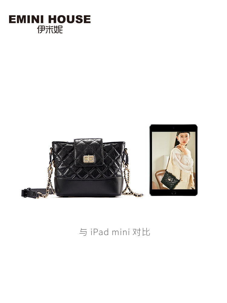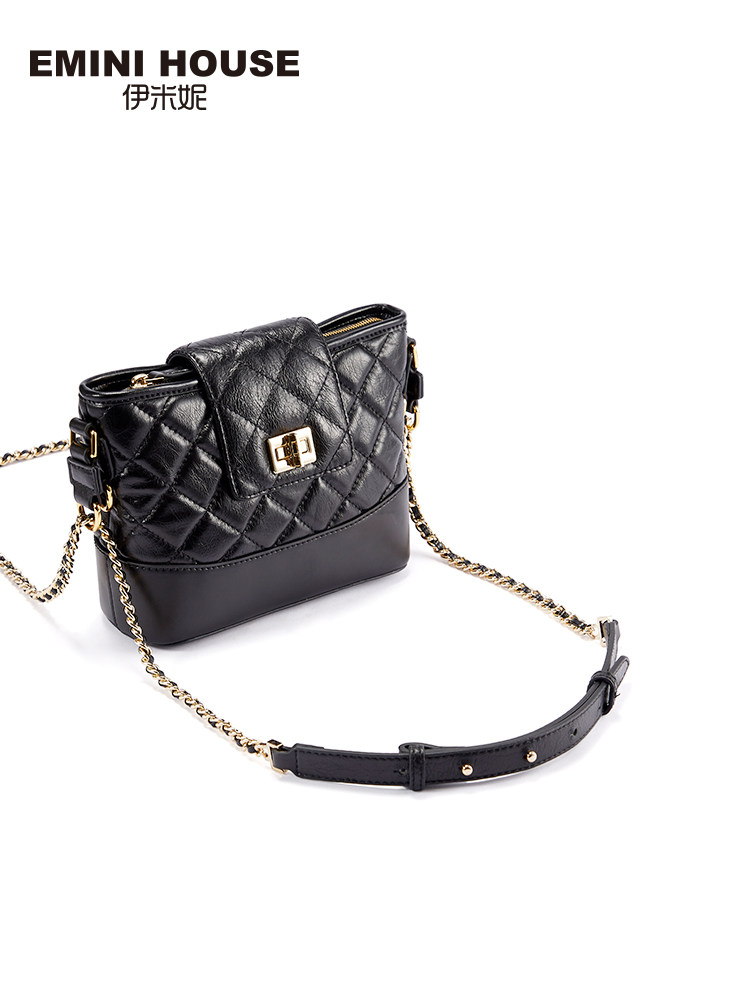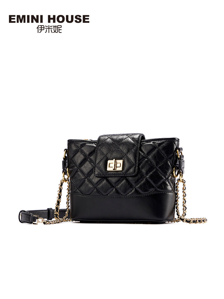 Yimini's new bag chain bag head layer oil wax cowhide high texture bucket bag women's messenger leather hobo bag