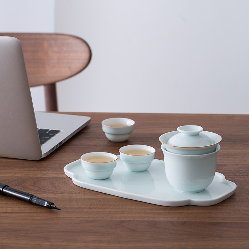 Ceramic tea tray Japanese-style kung fu tea set simple tea tray four seasons tray mini tray rectangular dry brewing water storage tea holder