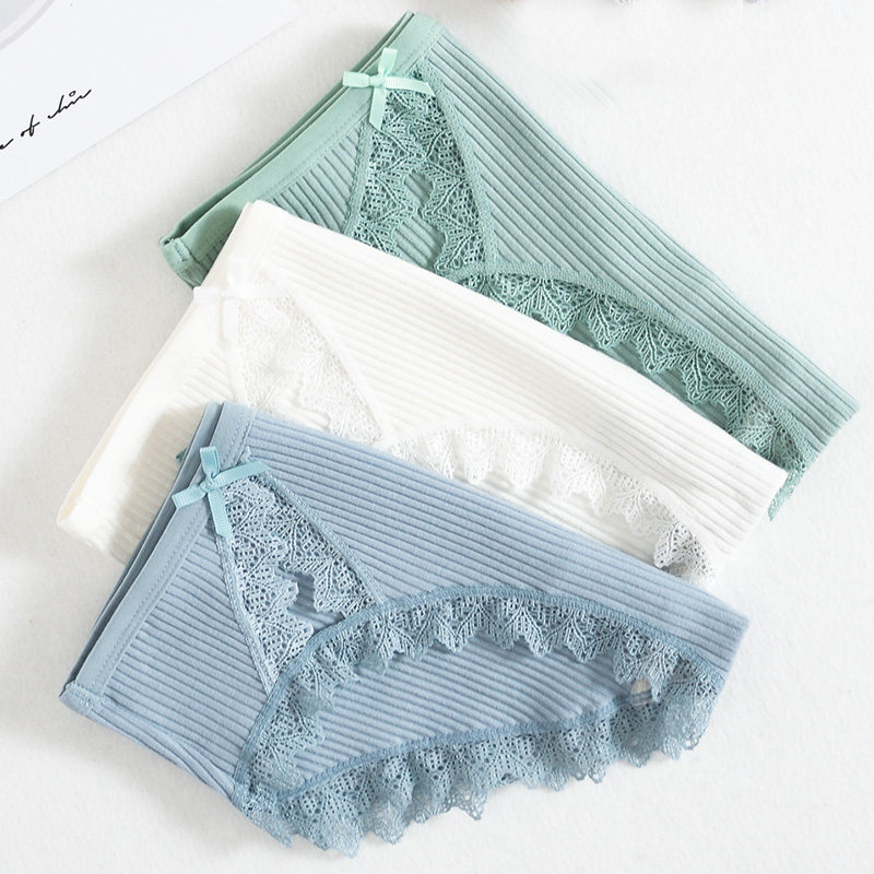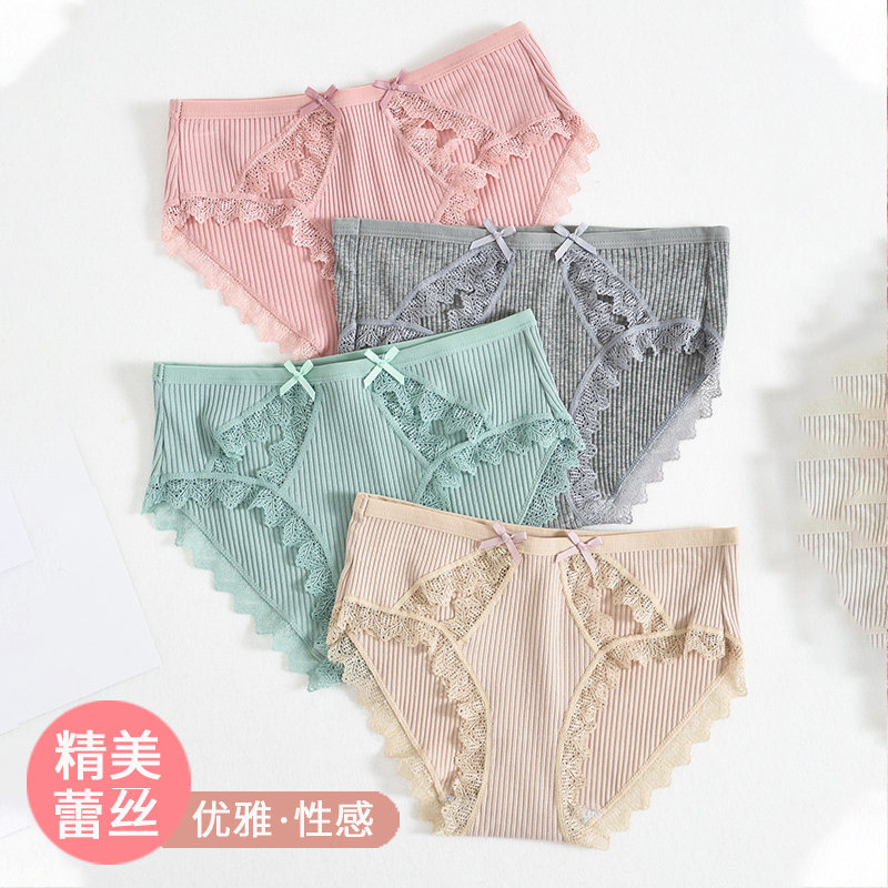 New Briefs Women's Day Series Thread Pure Cotton Bacteriostatic Safety Pants Mid Waist Sexy Lace Pure Color Less Lady Triangle Briefs