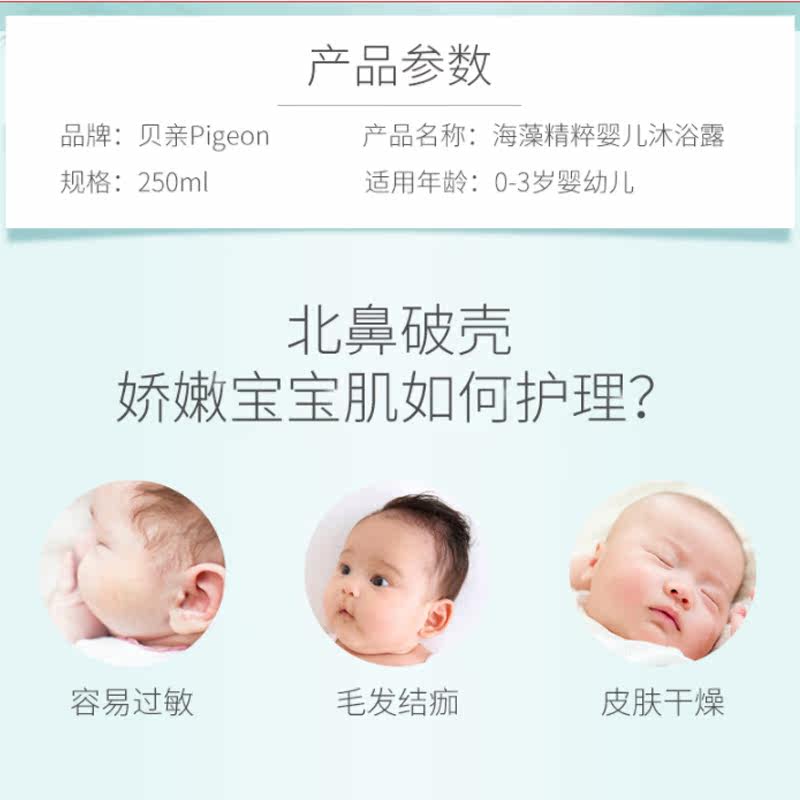 (Beiqin official discount store) seaweed 250ml IA222 shower gel baby shower gel newborn baby