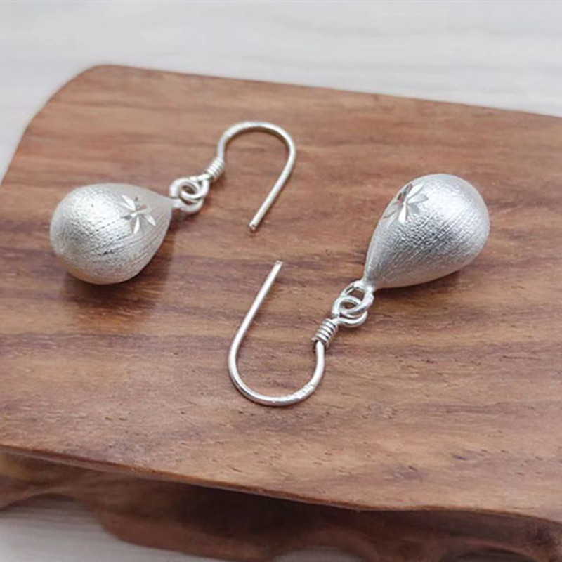 Pure silver ear ring 999 female foot silver long version ear ring glossy round pearl pendant drop wire drawing ear hook earrings to send girlfriend gift
