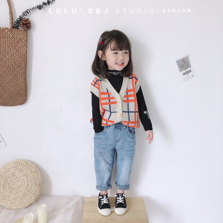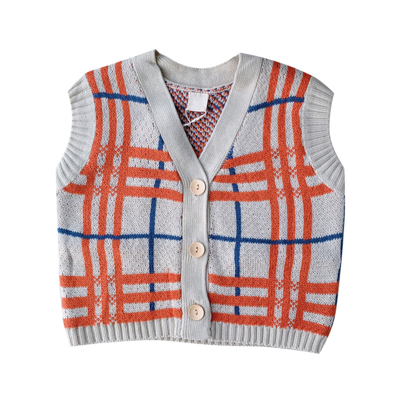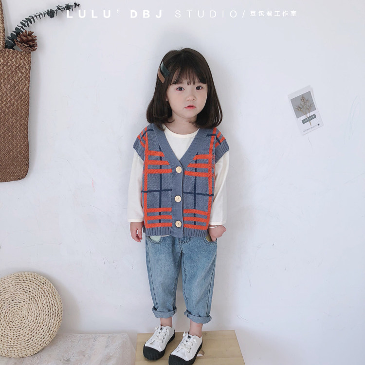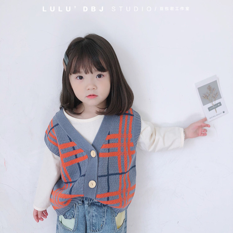 Bean Bag Monarch 22 Chunqiu Han version of children's temperament retro plaid sweater waistcoat waistcoat for cashmere sweater vest