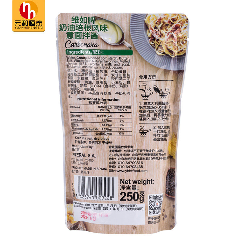 Viru cream bacon imported from Spain household instant pasta sauce spaghetti pizza baked rice 250g