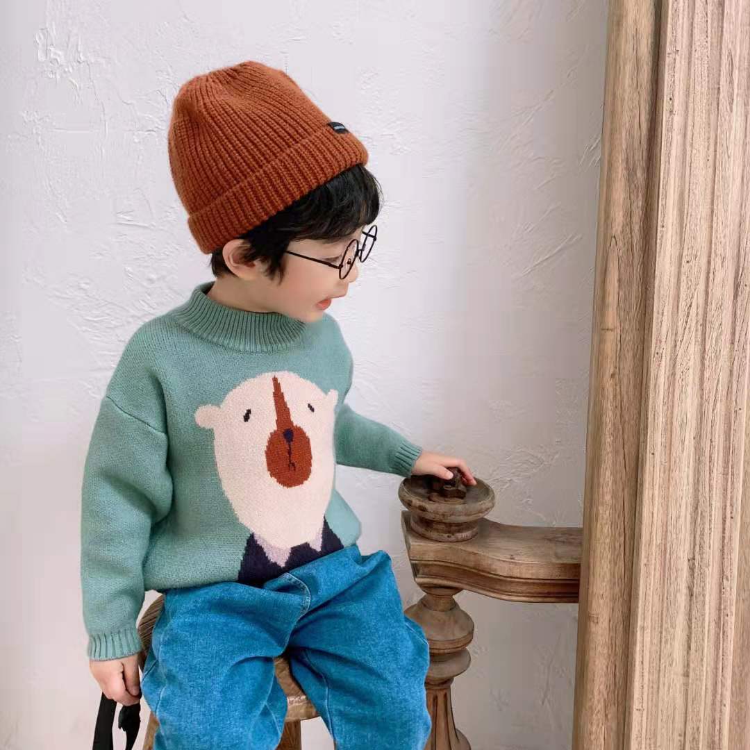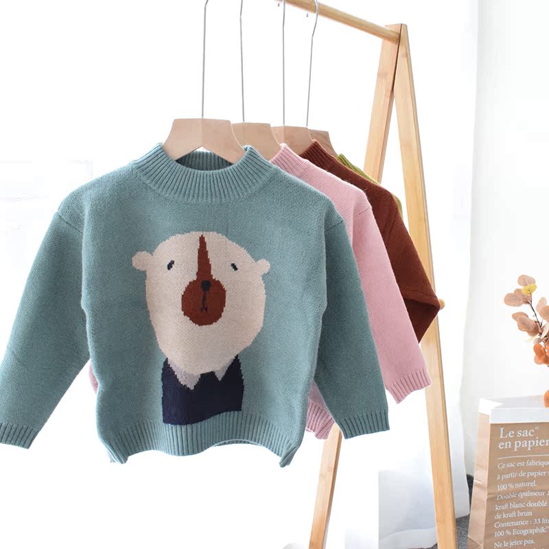 Children's sweater round neck pullover top spring and autumn outside wear cartoon cute long-sleeved boys and girls with elastic inside in autumn and winter