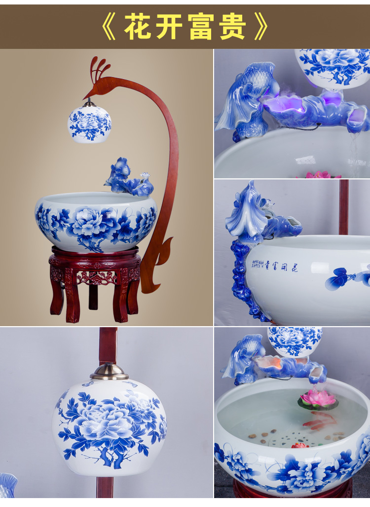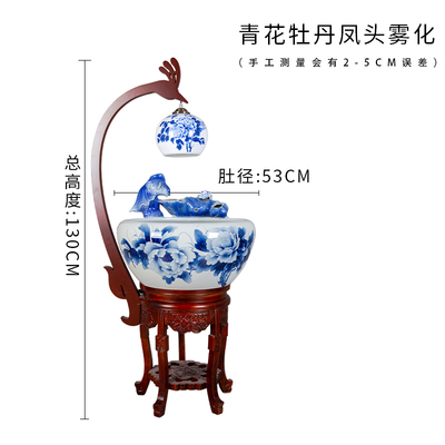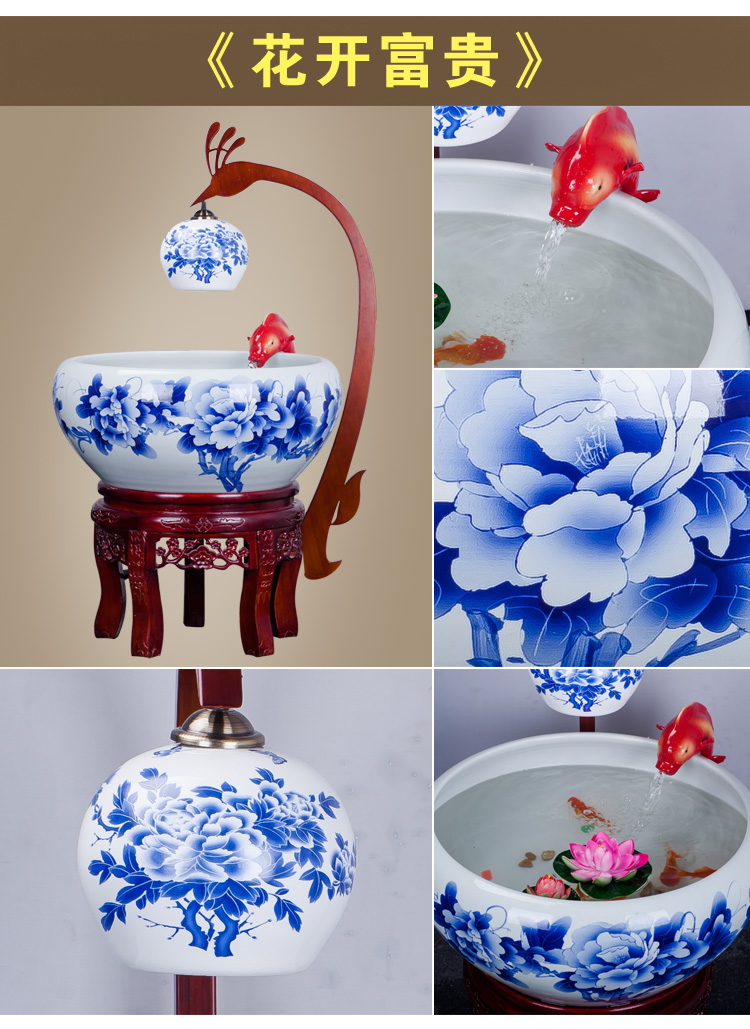 Diameter 36cm circulating water tank diameter 50cm blue and white peony diameter 60cm blue and white peony diameter 66cm blue and white peony diameter 88cm blue and white peony diameter 50cm with lamp