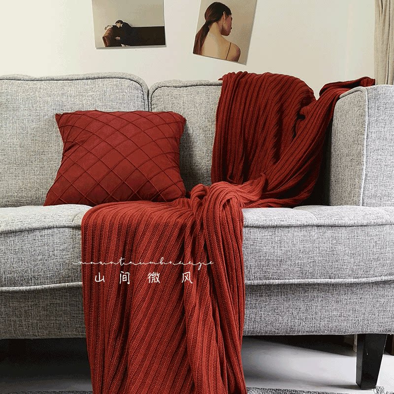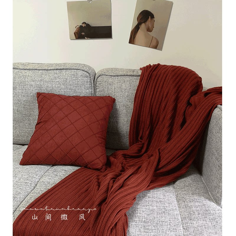 Wine red blanket bed end blanket ins Nordic bed blanket wedding sofa blanket wedding with festive red bed flag