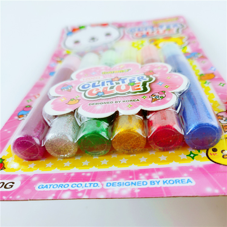Pupils 6-color flash glue cartoon art diy jelly golden onion glue flash powder handmade glue children's gifts