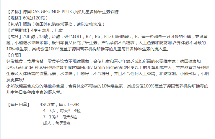 German bear sugar Vitamin sugar Cute QQ bomb Children's sugar Adults and children like to eat