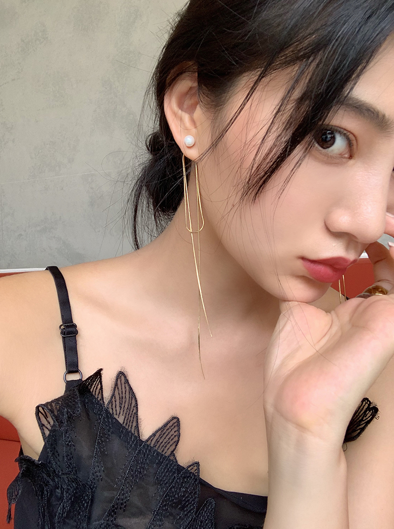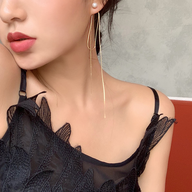 BOONEE◆2021 new fashion pearl tassel earrings female long version temperament advanced design sense summer earrings