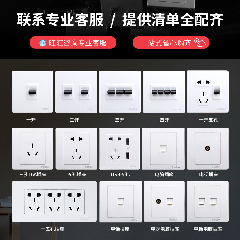 Opening two open three open five holes opening five holes 86 type ten holes five holes with USB charging socket 16A air conditioning socket TV socket Phone socket network route socket Phone computer socket TV computer plug