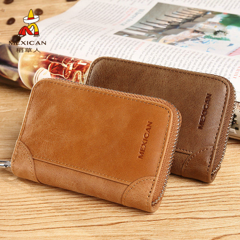 Scarecrow card Bag Men's retro zipper credit card bag leather women's coin wallet driver's license first layer cowhide business card bag