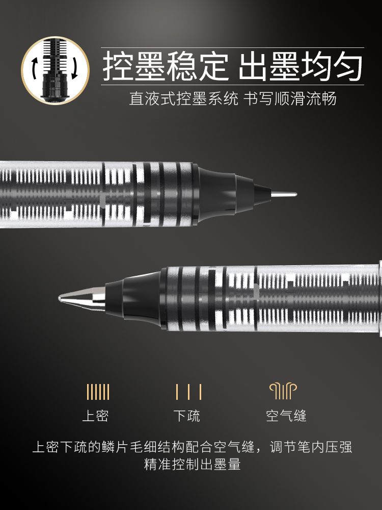 Baixue straight liquid water-based ballpoint pen 0 5mm black students with gel pen full needle pen signature pen red pen black water-based pen test special pen 6 8 batches send pen holder PVN166