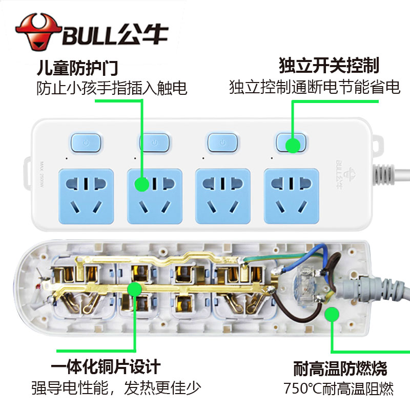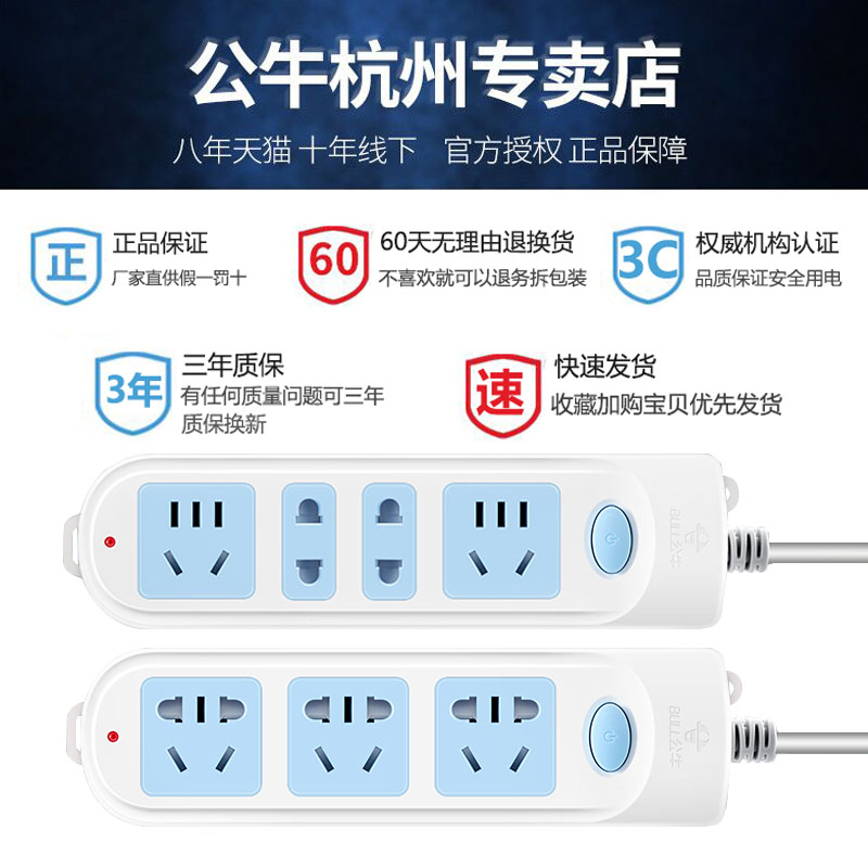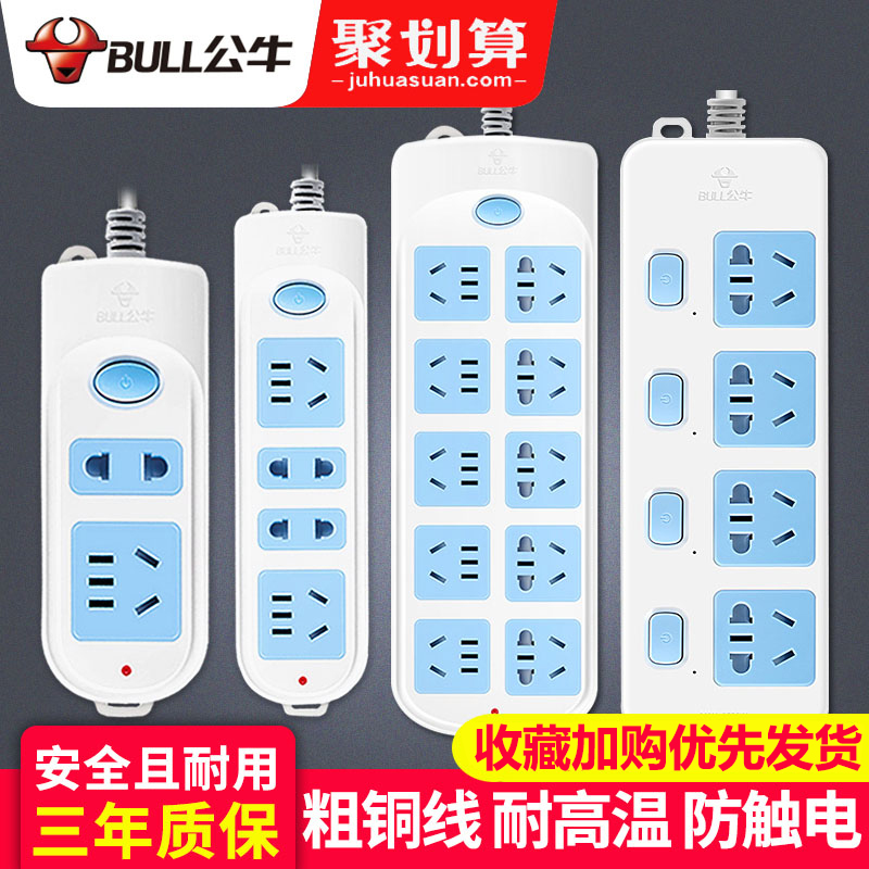 Bull socket panel porous plug row plug long-term multi-purpose function household tow wiring board Electric plug board with wire