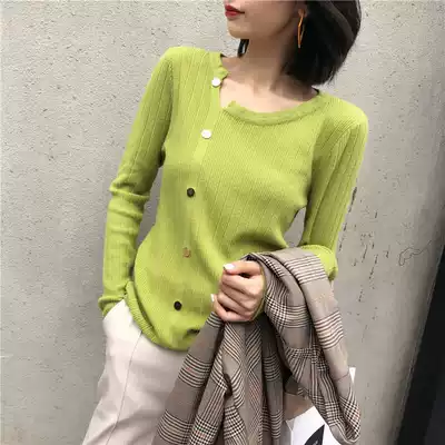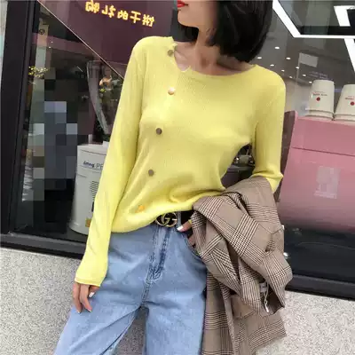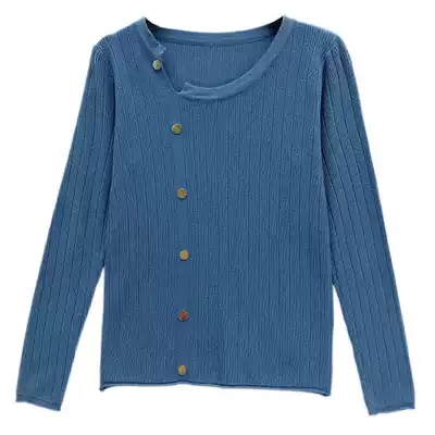 Knitted bottoming shirt spring and autumn 2021 new women's blue design sweater loose and thin spring long-sleeved top